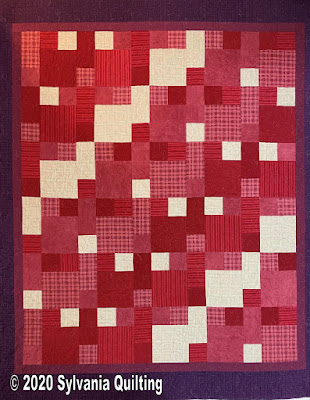 Pam K. made this pink and purple flannel quilt. The piecing pattern is called Take 5. Pam chose the quilting pattern called Hearts 2. We used a variegated pink/beige thread.